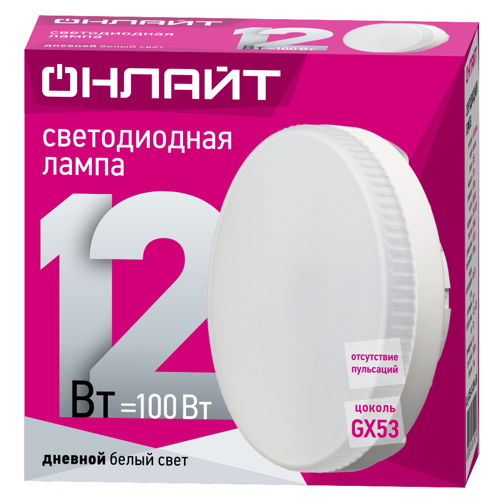 10 цен на Лампа онлайт 61 192 OLL-GX53-12-230-6.5K, 12 Вт таблетка, GX53, холодный свет 6500К, упаковка 10 шт.