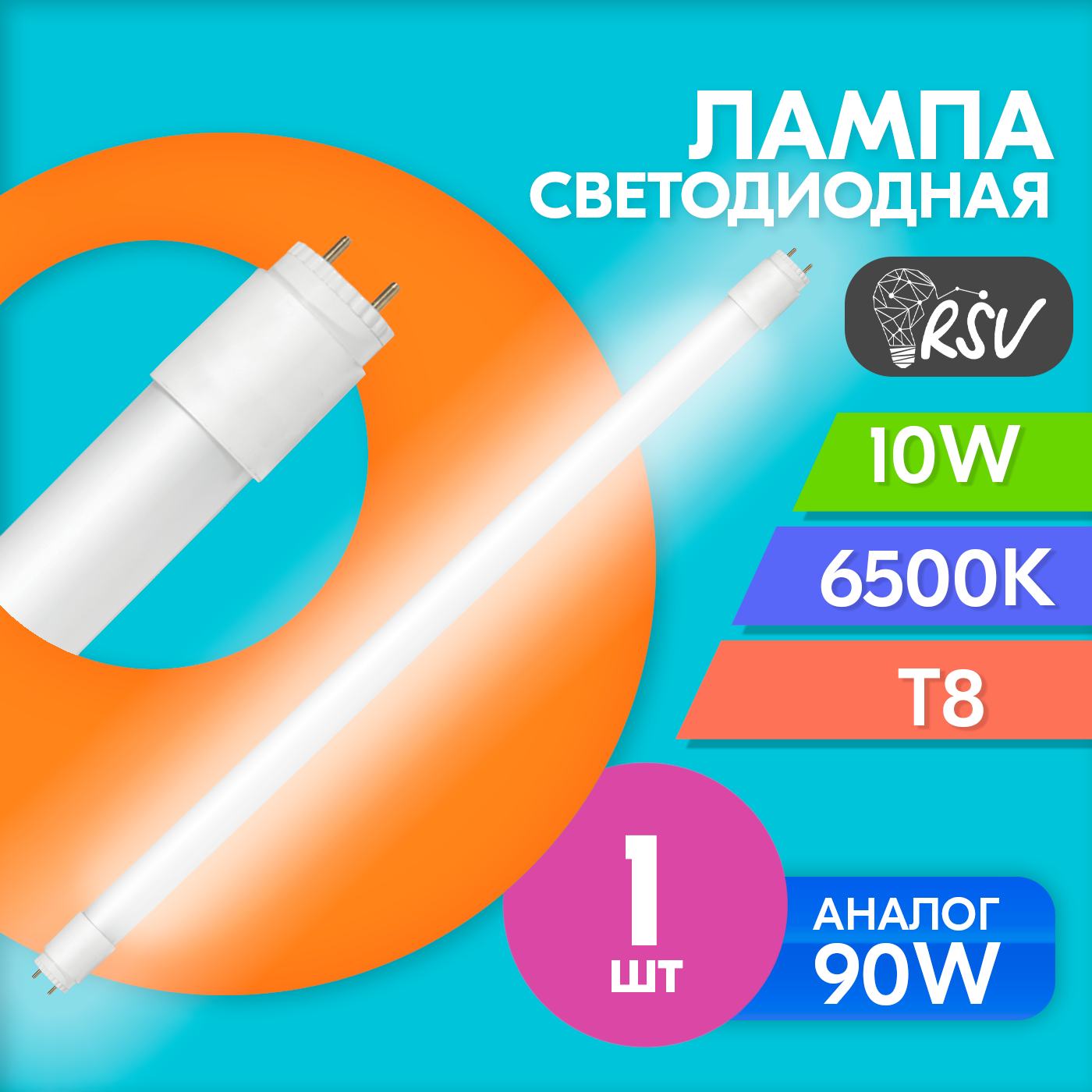 10 цен на RSV Лампа светодиодная RSV-SPB-T8-10W-6500K