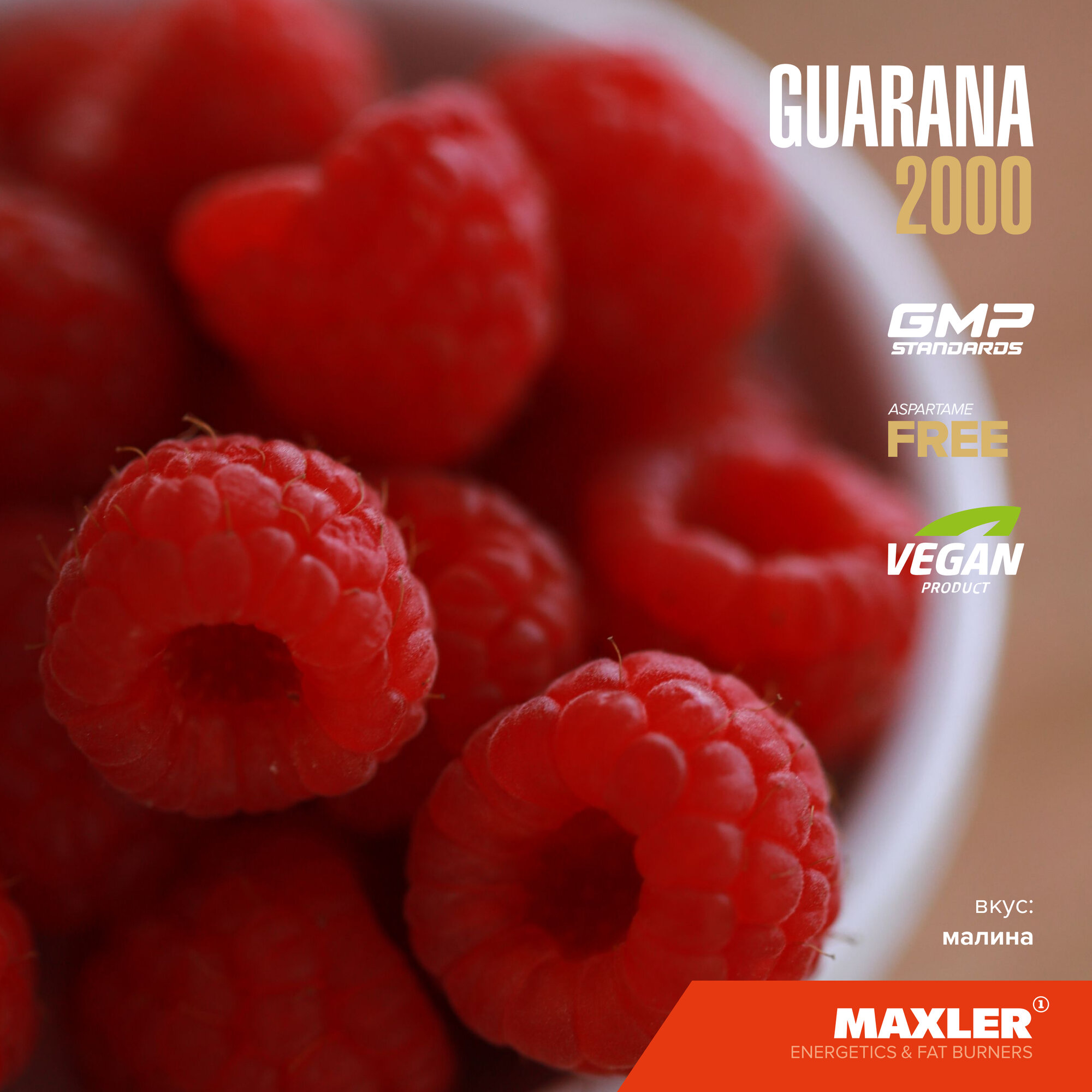 Энергетик Maxler Guarana 2000 ( Гуарана 2000 ), 14 ампул по 25 мл. - Малина