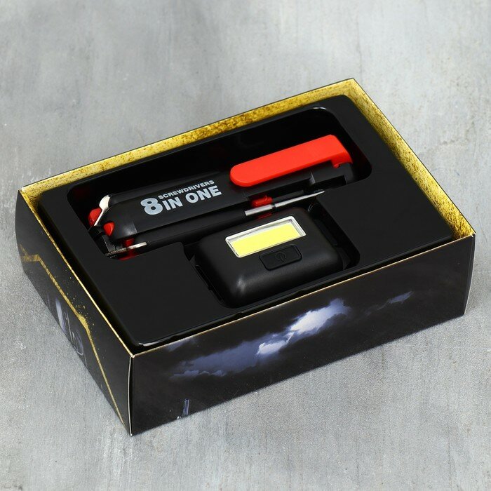 Набор автоаксессуаров 2 в 1 "Золотой водитель": мультитул и фонарик на голову информация: