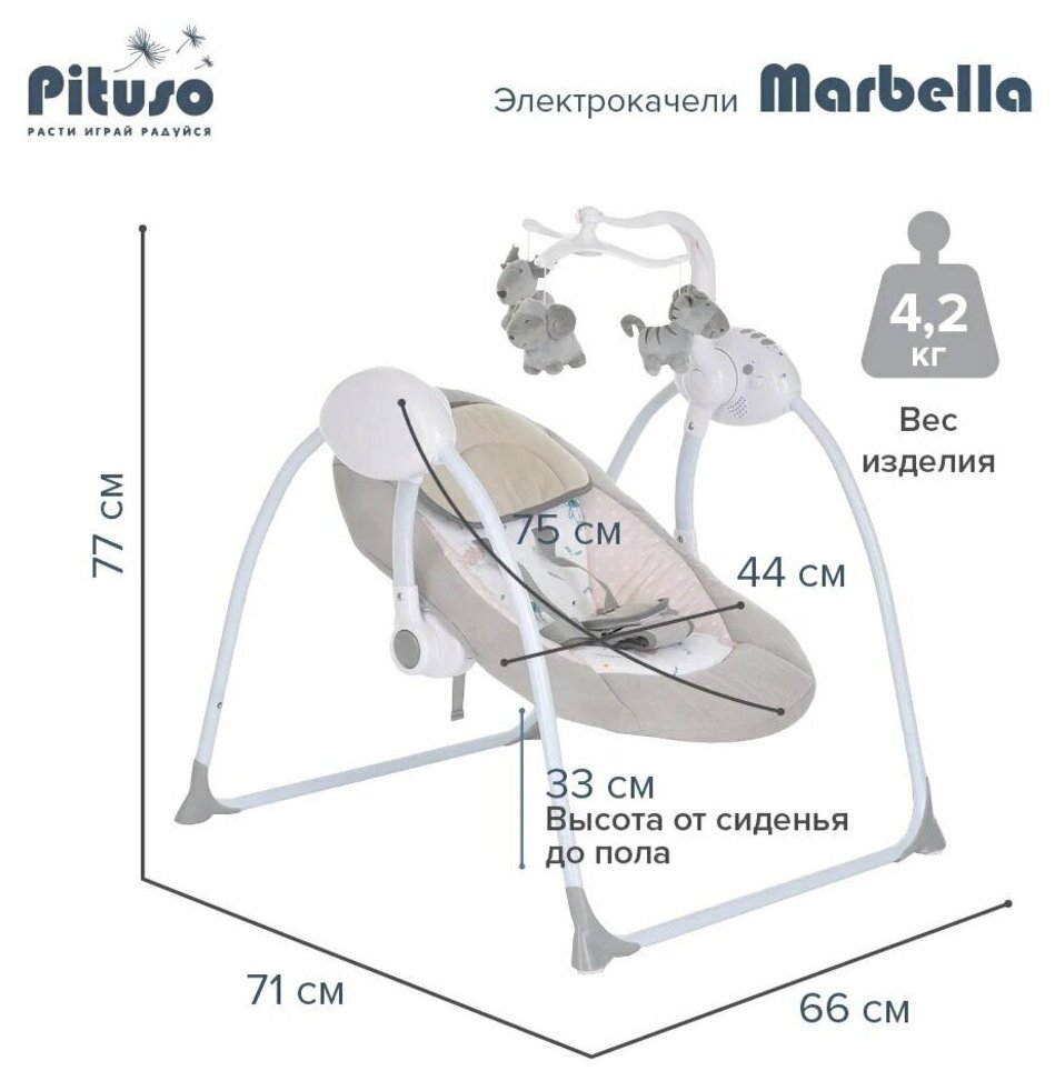 Электрокачели Pituso Marbella Grey/Серый, точки 8 550 ₽