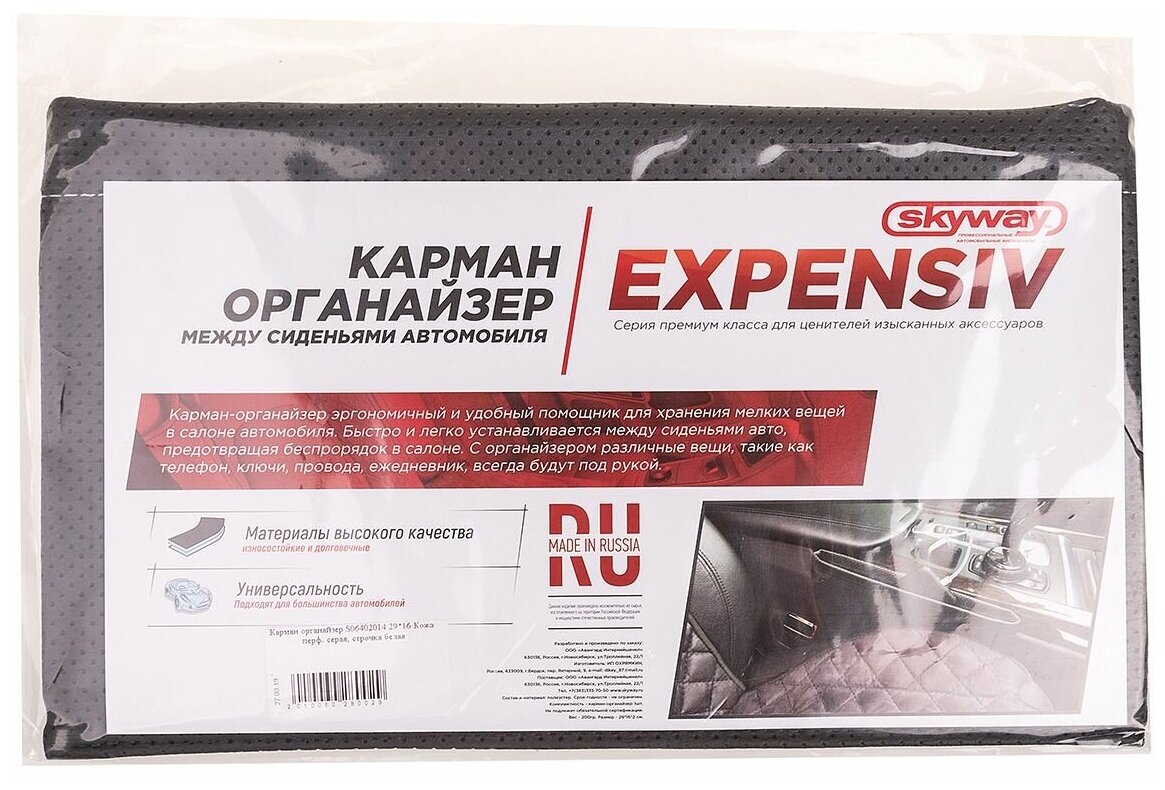 10 цен на Карман-органайзер между сиденьями SKYWAY 29*16 Кожа перф. Серый, строчка белая