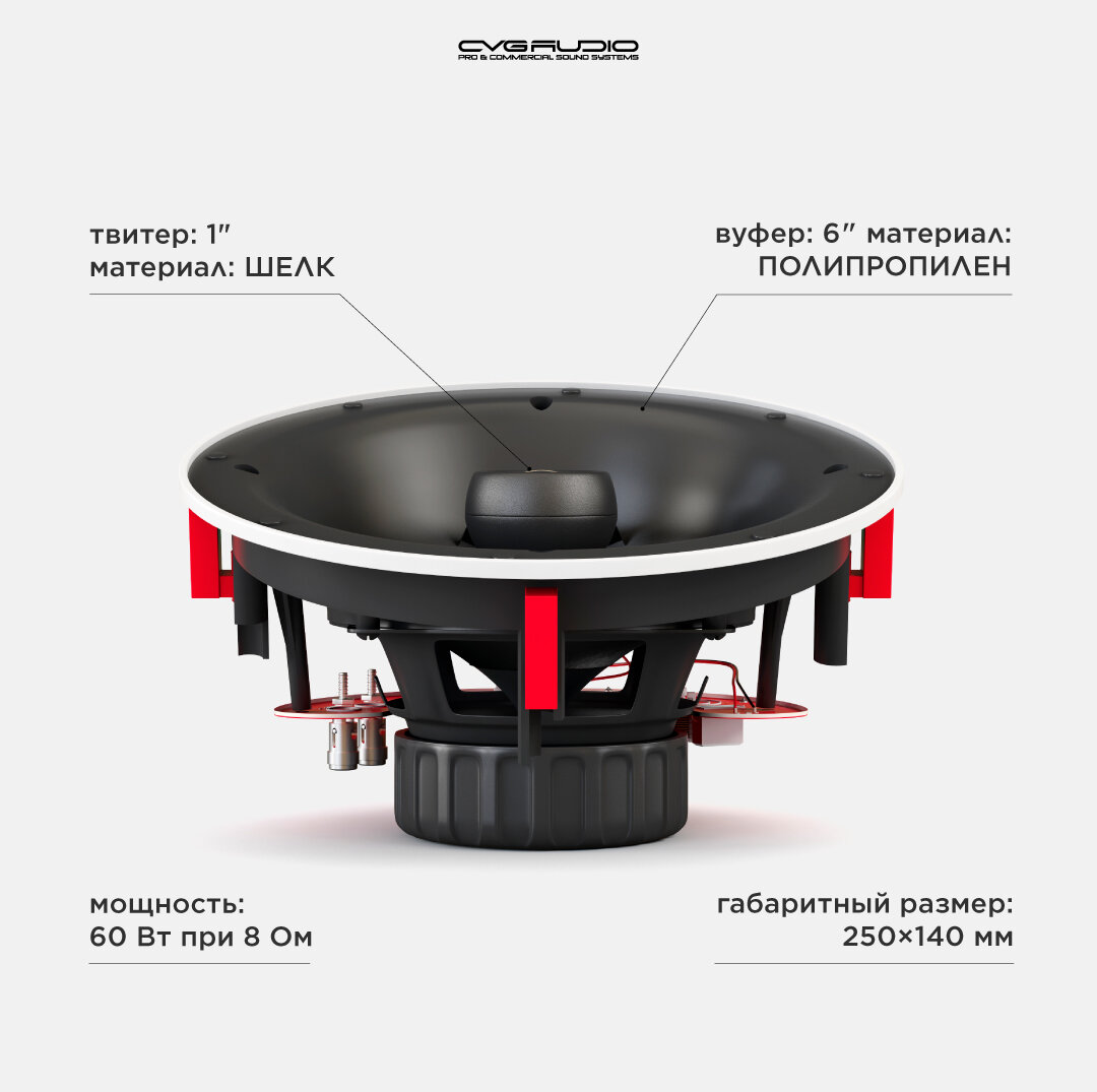 CVGAUDIO TXC608 Встраиваемые в потолок двухполосные акустические системы Hi-Fi класса с угловой установкой диффузора, 30W(RMS) / 100W(MAX), 8ohm информация: