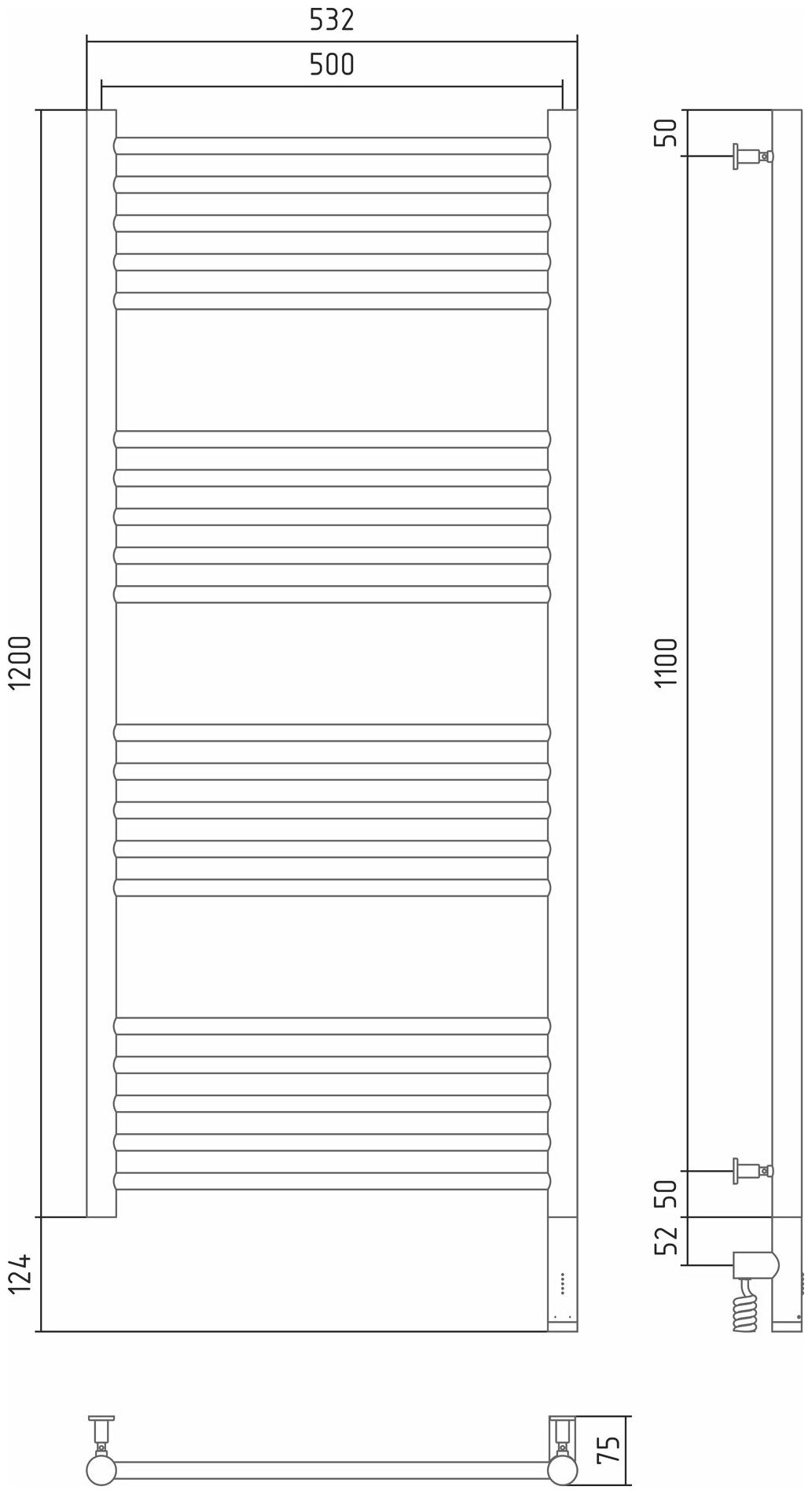 Полотенцесушитель электрический Сунержа 00-5805-1250 Богема 3.0 Полотенцесушитель электрический РЭБ, прямая, 1200х500 мм/ МЭМ правый, без покрытия