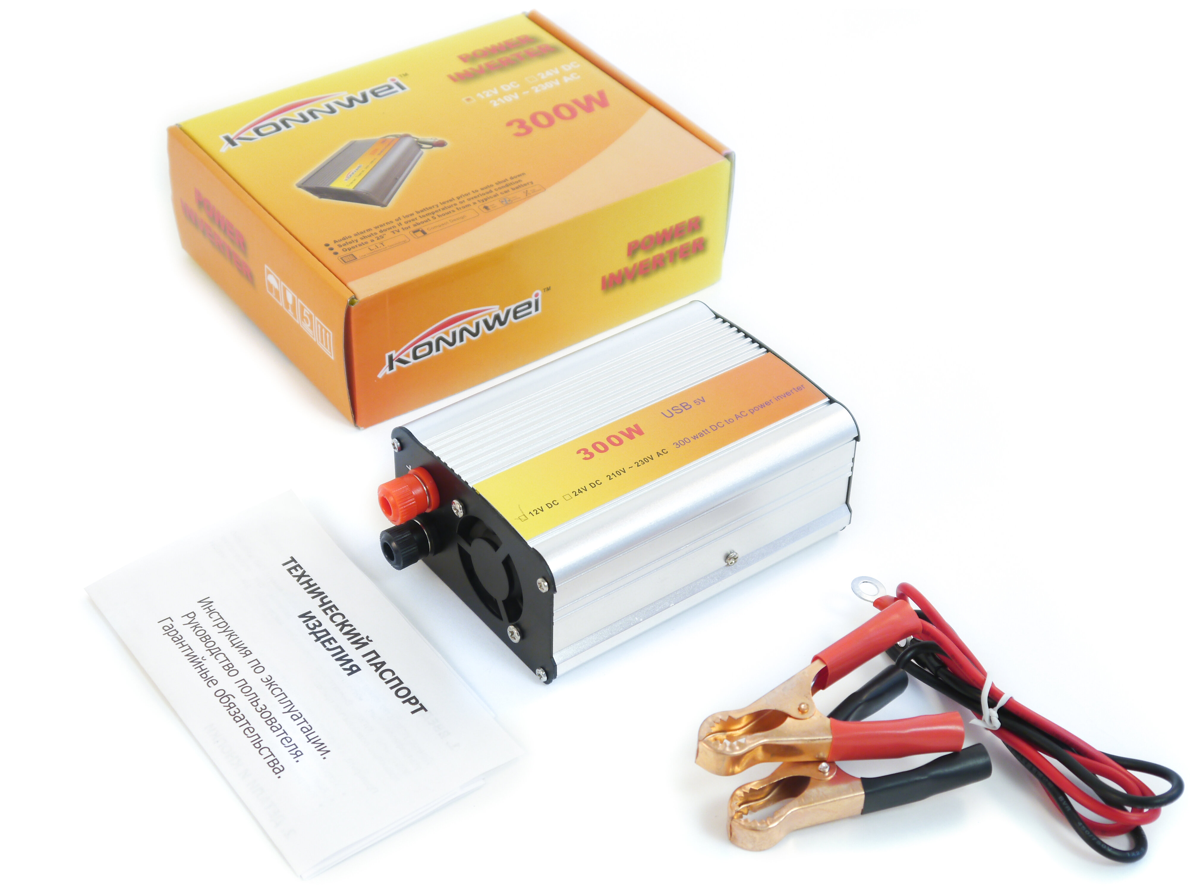 Автомобильный инвертор Konnwei-300 (12-220) - преобразовать 12В в 220В переменного тока - преобразователь с 12 на 220 в подарочной упаковке информация: