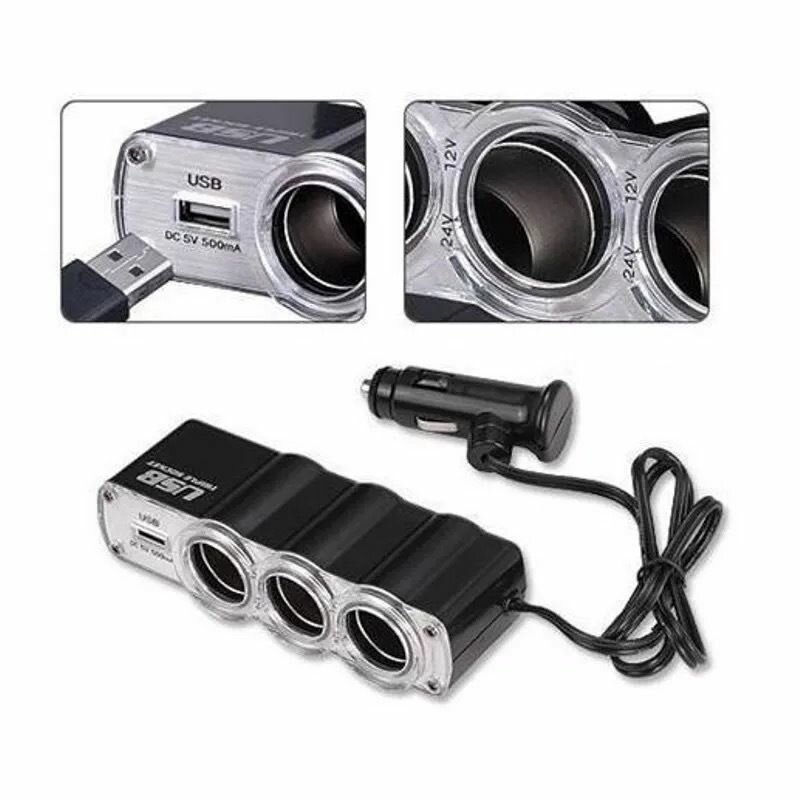 Отзывы на Разветвитель прикуривателя автомобильный на 3 гнезда с USB WF-0120