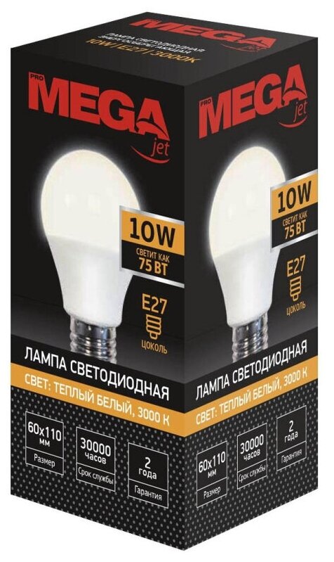 Отзывы на Лампа светодиодная Mega 10 Вт E27 3000 K грушевидная теплый белый свет ProMega jet 1053689