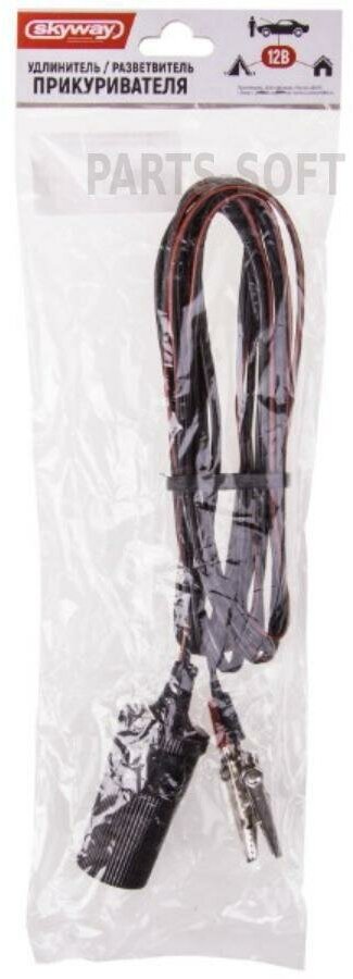 Удлинитель прикуривателя 12/24 В 60-70 Вт черный 5 А с крокодилами 3 м Skyway SKYWAY S00702001 | цена за 1 шт