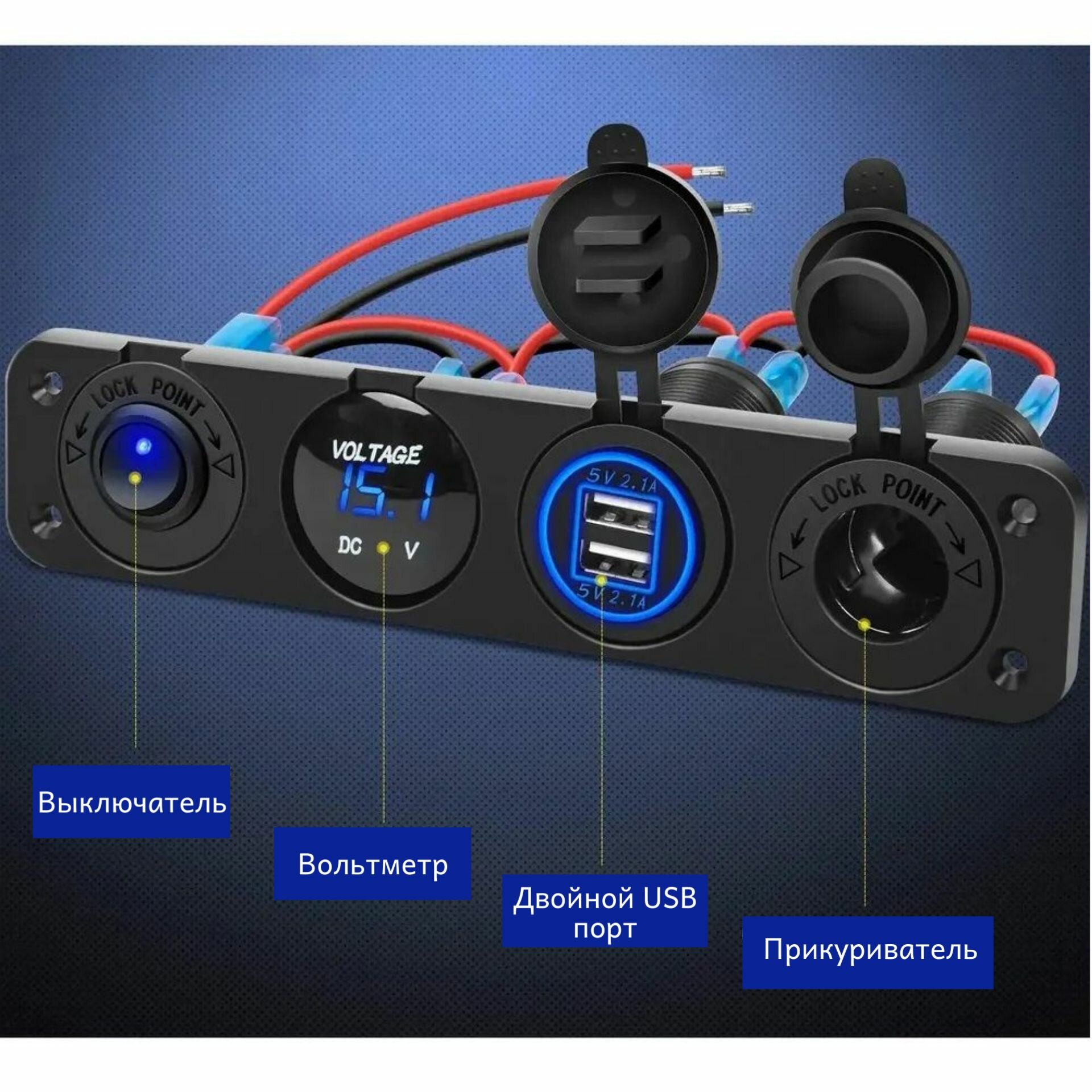Разъем USB в авто врезной 5V 2.4A / Розетка в машину, вольтметр / Разветвитель автомобильный информация: