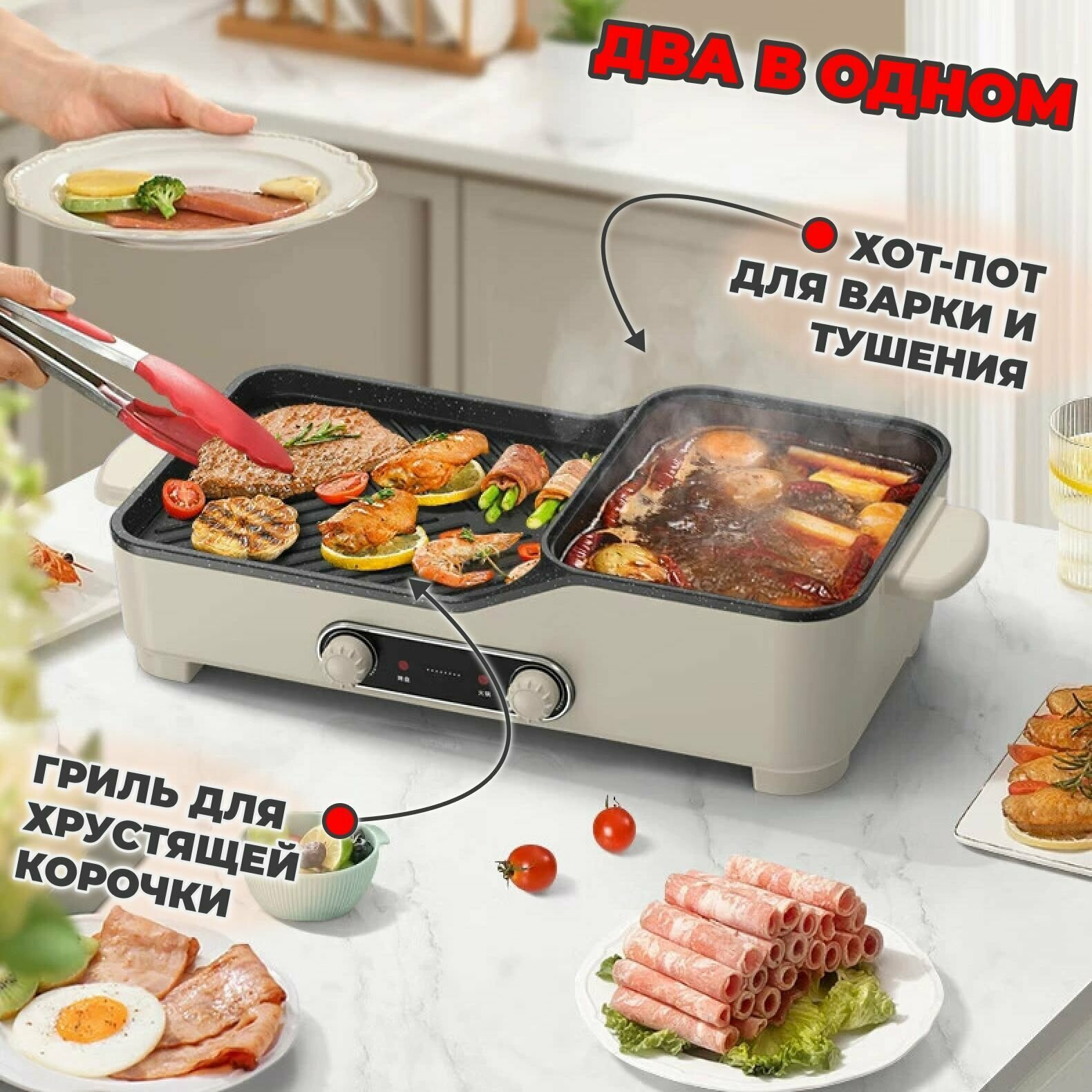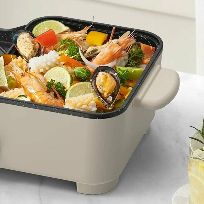 Многофункциональный гриль электрический 2 в 1 Барбекю + Хот-Пот информация: