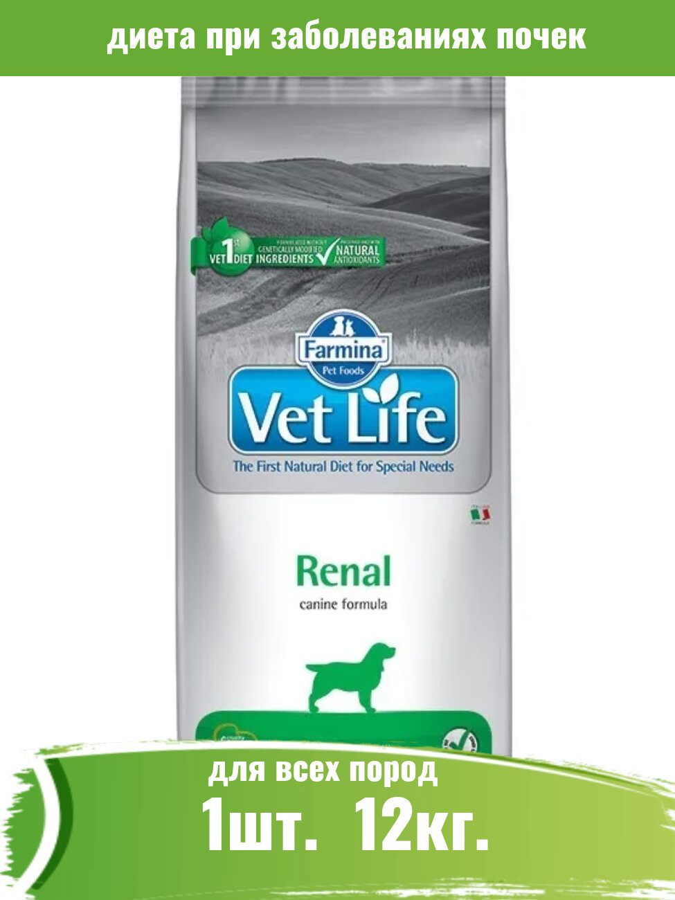 Farmina 1шт -12кг Vet Life Dog для собак с почечными заболеваниями информация: