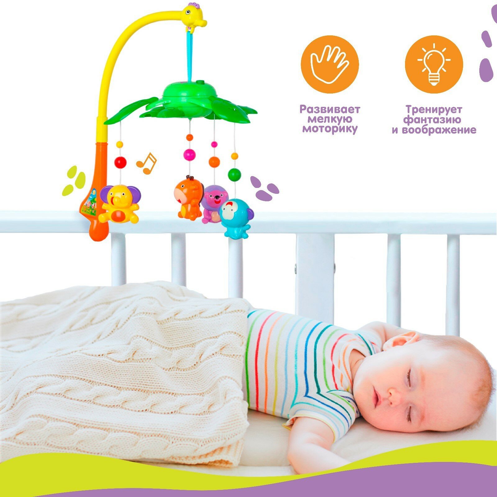Мобиль в кроватку для новорожденных, Умка, 7 колыбельных, съемные игрушки, звуки природы