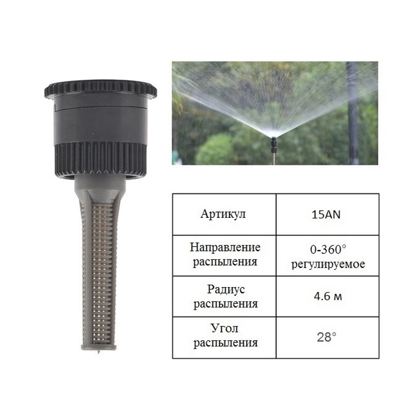 Форсунка для спринклеров автополива – радиус 4.6 м, сектор 0 – 360°, 15AN, 5 штук информация: