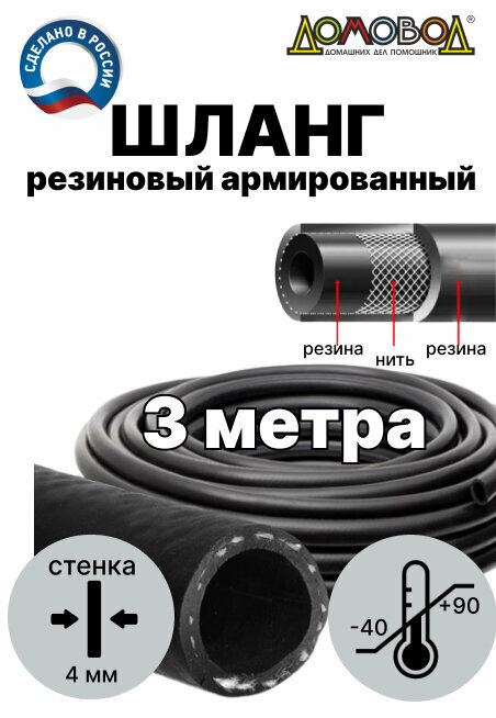 Отзывы на Шланг резиновый для полива армированный всесезонный кварт d16 мм длина 3 м ДомовоД ША1016-3