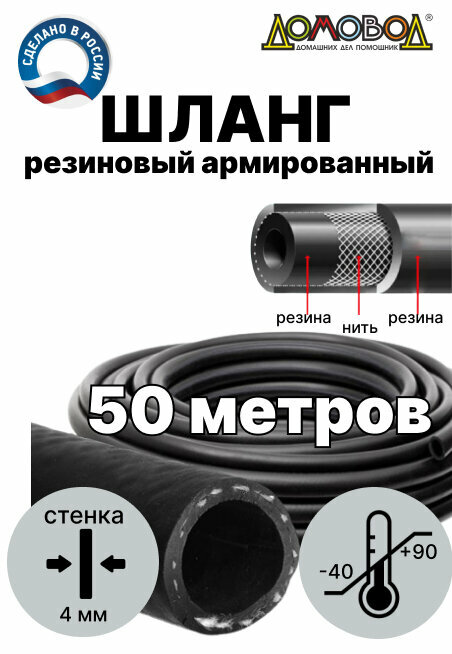 Шланг резиновый для полива армированный всесезонный кварт d16 мм длина 50 м для насосов кордовый ДомовоД ША1016-50 информация: