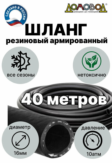 Шланг поливочный резиновый армированный всесезонный кварт d16 мм длина 40 м для насосов кордовый ДомовоД ША1016-40 информация:
