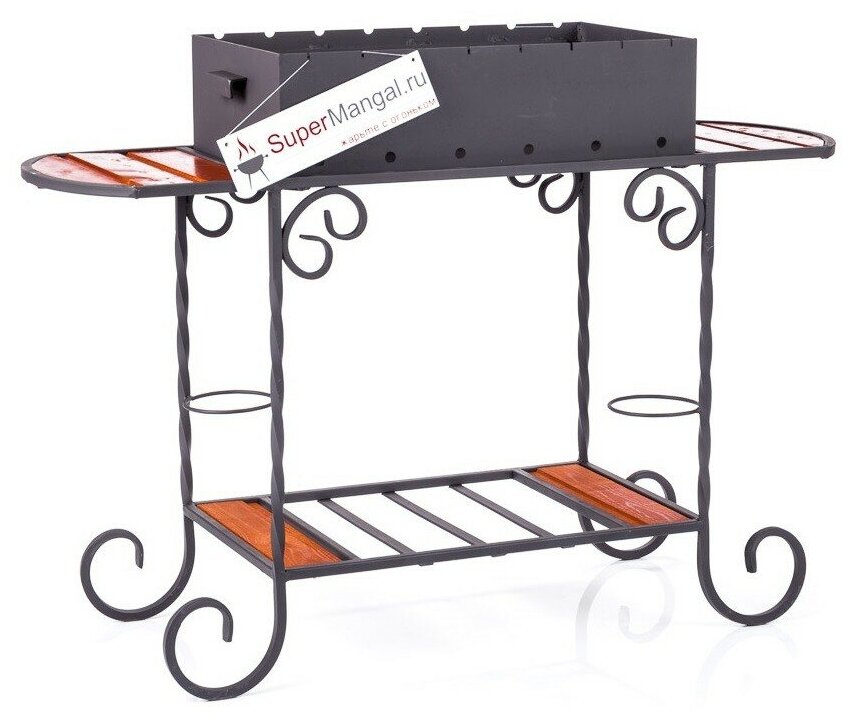 Мангал 800 мм. с полкой-решёткой и полкой под казан, сталь рифленая-усиленная 3 мм. разборный, с полкой под дрова