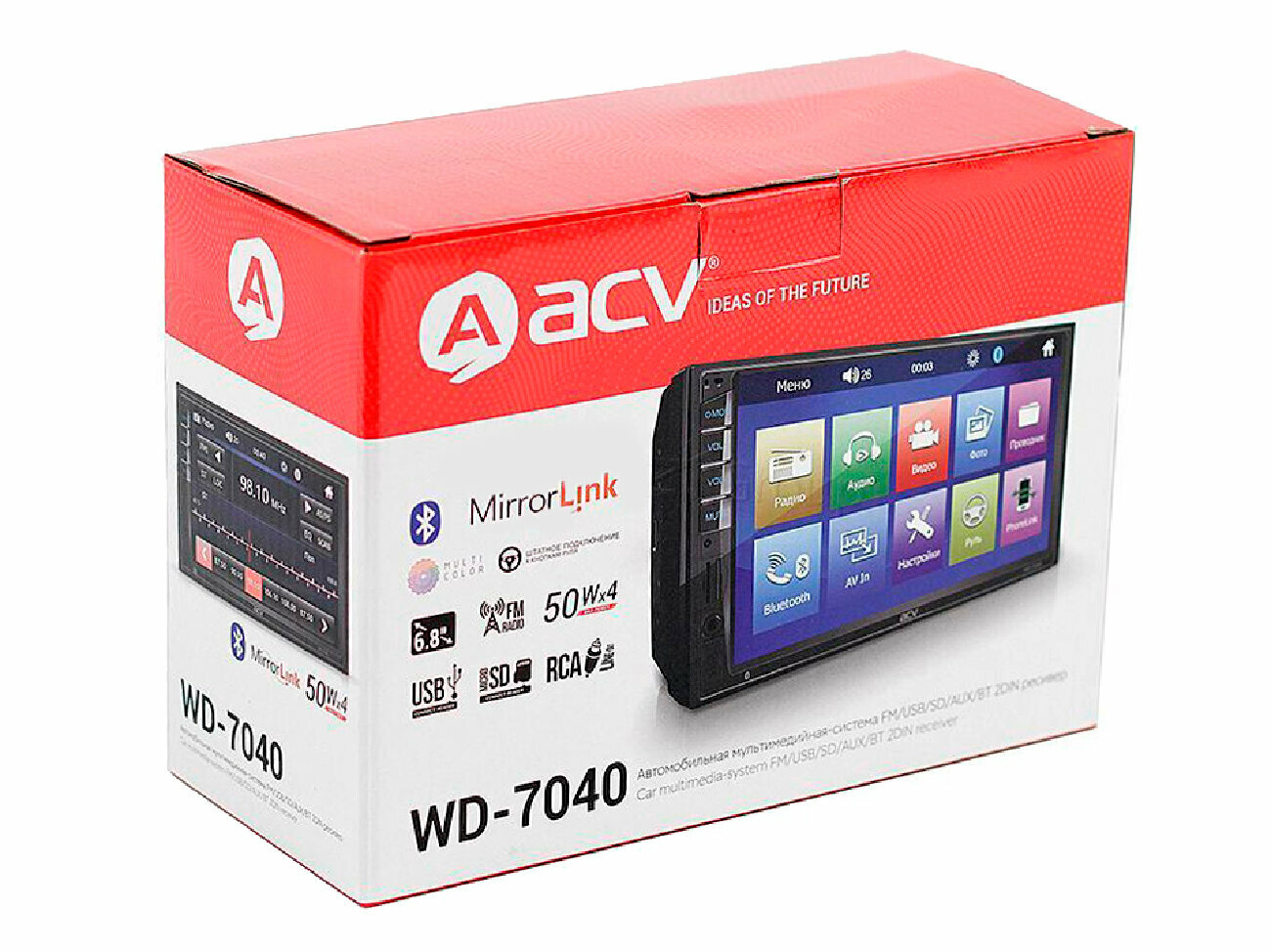 Автомагнитола ACV WD-7040 2DIN 4x50Вт информация: