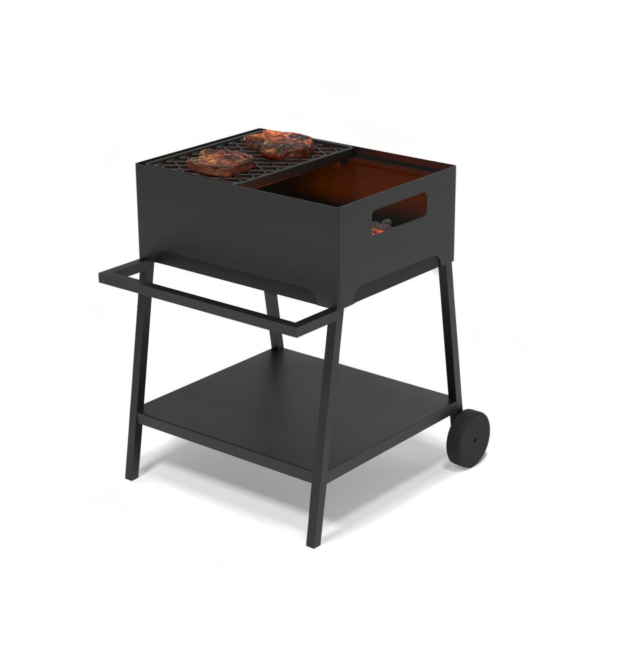 Мангал 800 мм. с полкой-решёткой и полкой под казан, сталь рифленая-усиленная 3 мм. разборный, с полкой под дрова