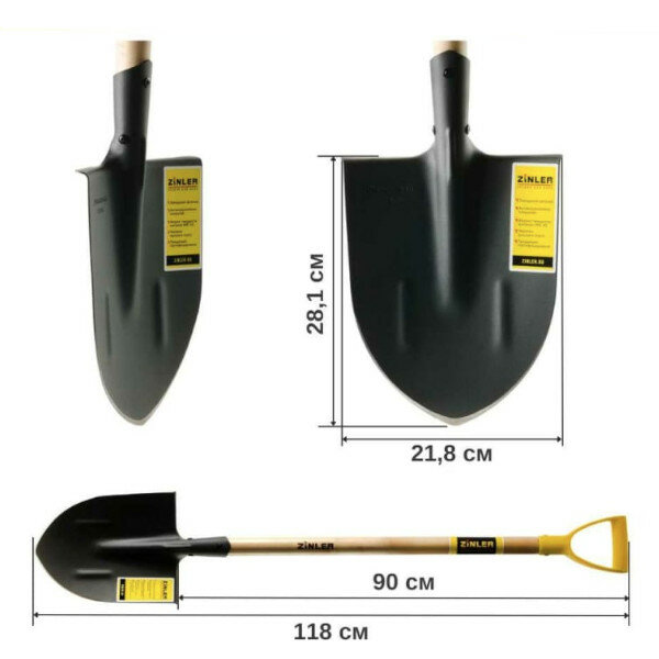 Лопата копальная ZINLER остроконечная дер.чер. 740мм, ручка информация: