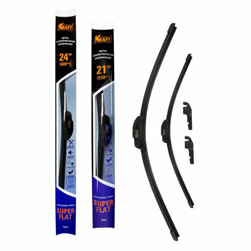 Отзывы на KRAFT KT830921 К-т бeскаркасных щеток стеклоочистителя TEFLON 600/530 ММ, 1 адаптер