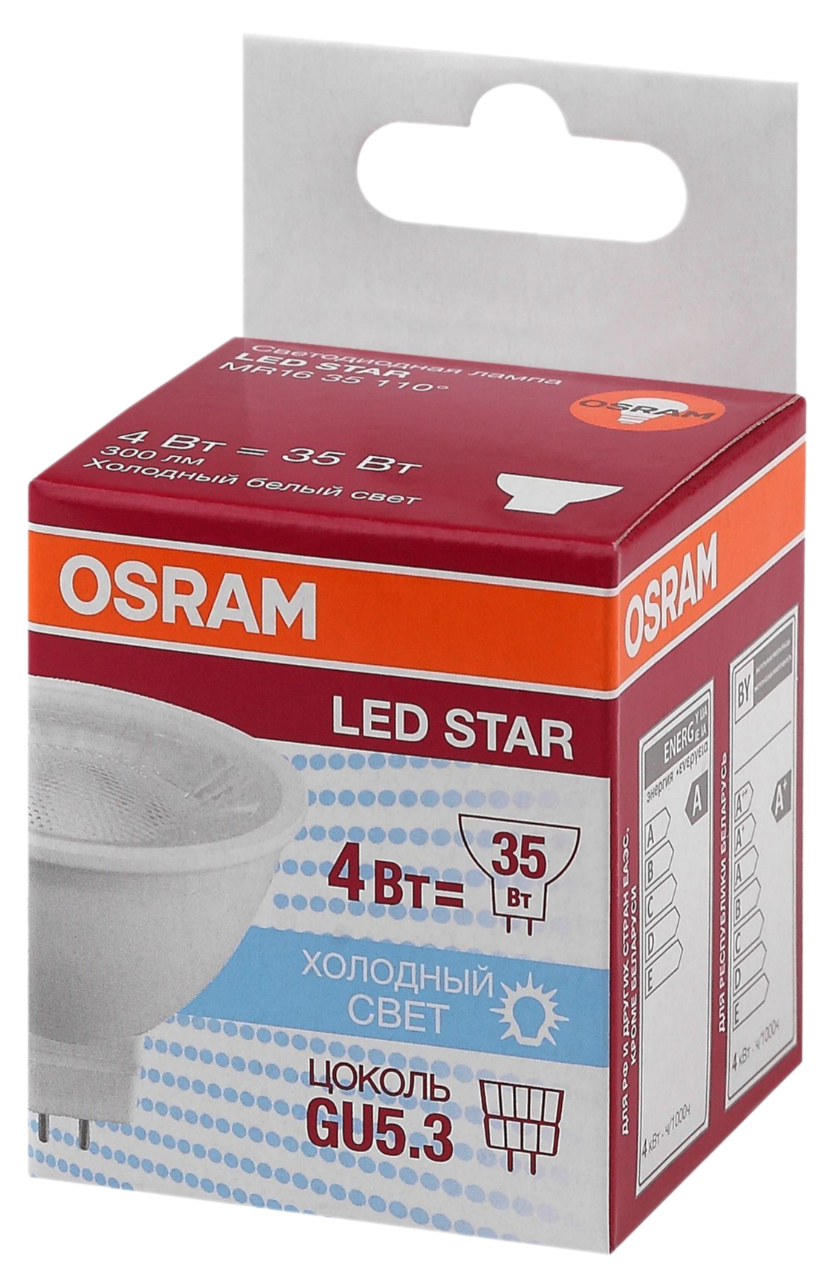 Отзывы на Лампа светодиодная OSRAM LED Star MR16, 300лм, 4Вт , 4000К, нейтральный белый свет, Софит, Цоколь GU5.3