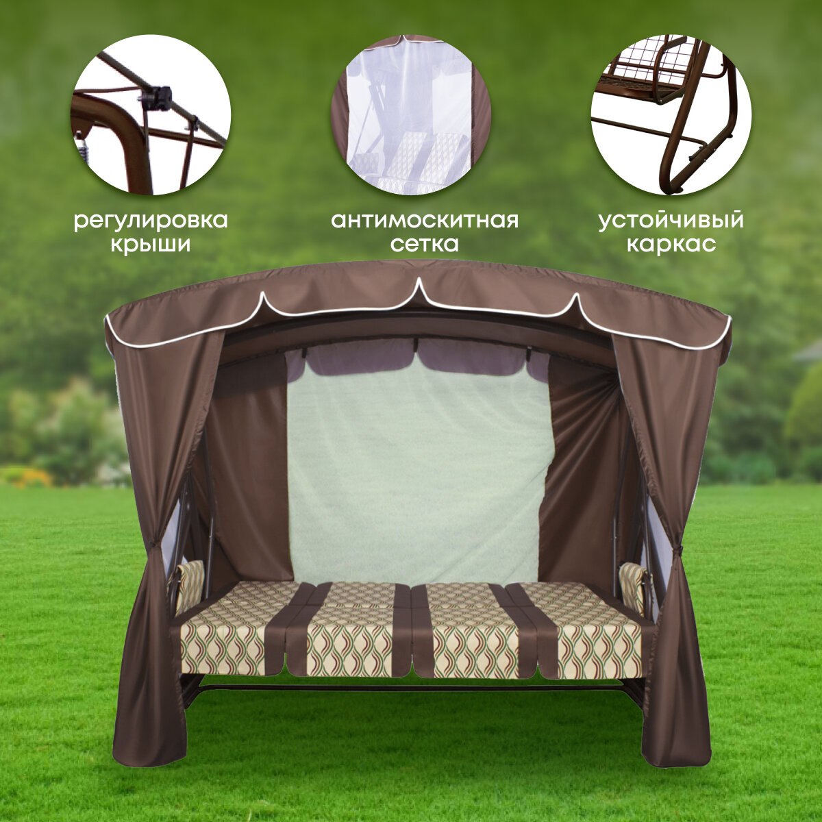 10 цен на Качели садовые 4-местные, 232х125х195 см, 380 кг, Arno, Оазис Люкс+, раскладываются в кровать, с москитной сеткой, коричневые, полусоты, 2016-КД- 40/Л