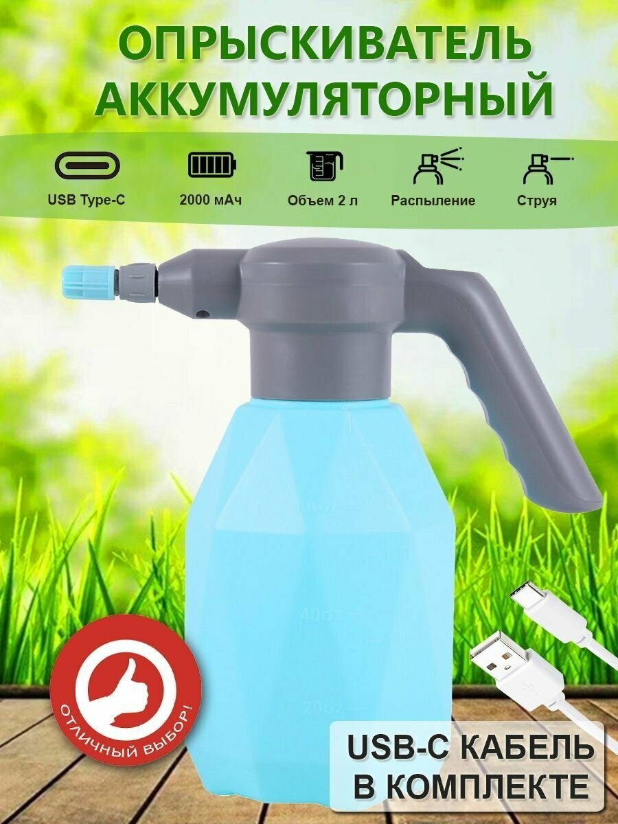 Опрыскиватель аккумуляторный 2л синий / Распылитель садовый / Лейка для растений информация: