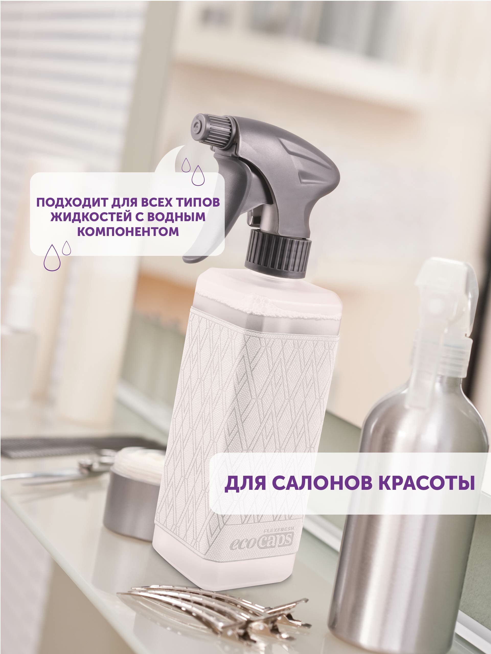 10 цен на Флакон с распылителем 500 мл EcoCaps с наклейкой из экокожи Saffiano, цвет Белый