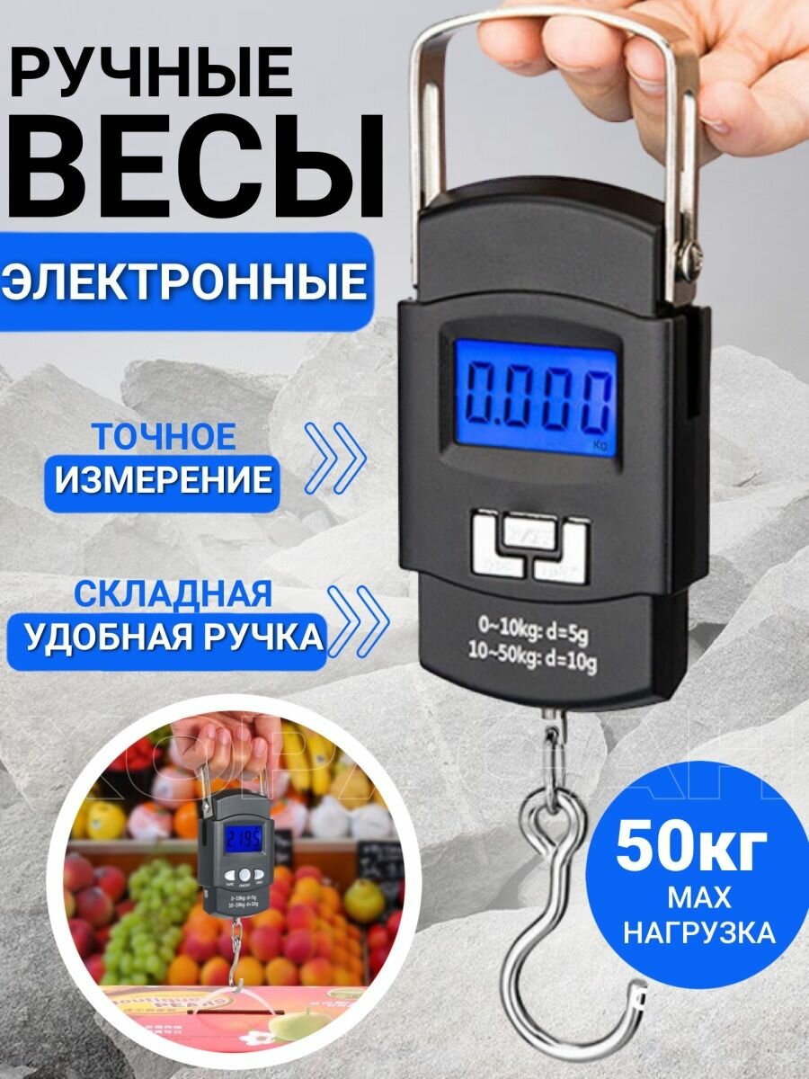 Ручные электронные весы безмен с крючком и дисплеем универсальные до 50кг