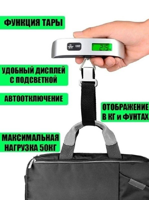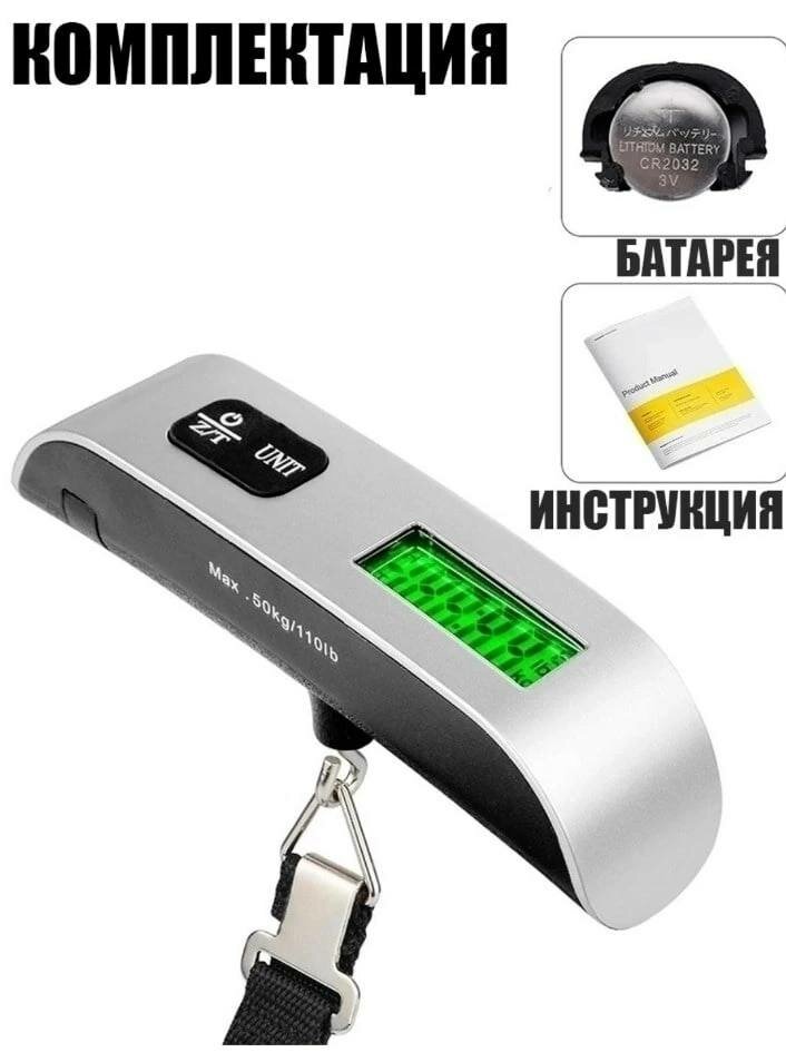 Ручные электронные весы-безмен для багажа до 50 кг с функцией термометра + зеленая подсветка