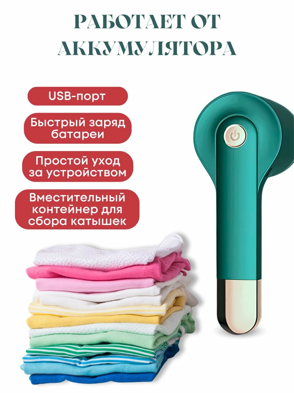 Машинка для удаления катышков / Миниклинер аккумуляторный для ухода за одеждой и домашним текстилем зеленый информация: