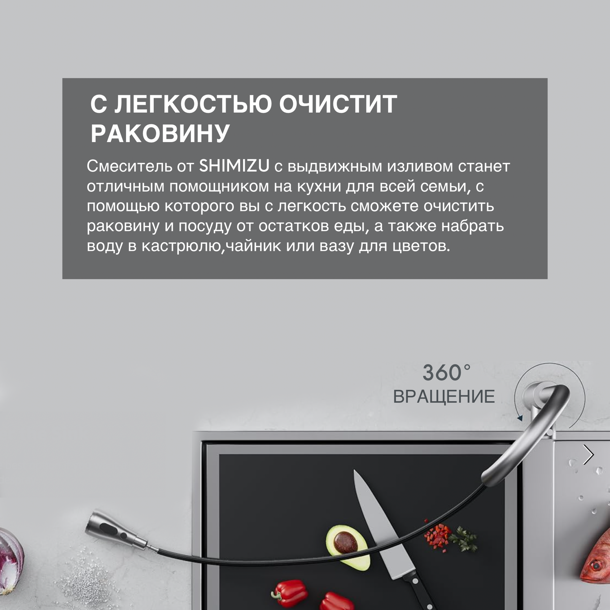 Смеситель для кухни с выдвижным изливом и режимом душ Shimizu High-pull smz 1006565