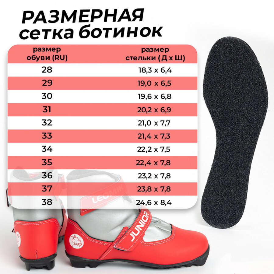 Отзывы на Ботинки лыжные детские Leomik Junior серо-красные размер 36 крепление NNN