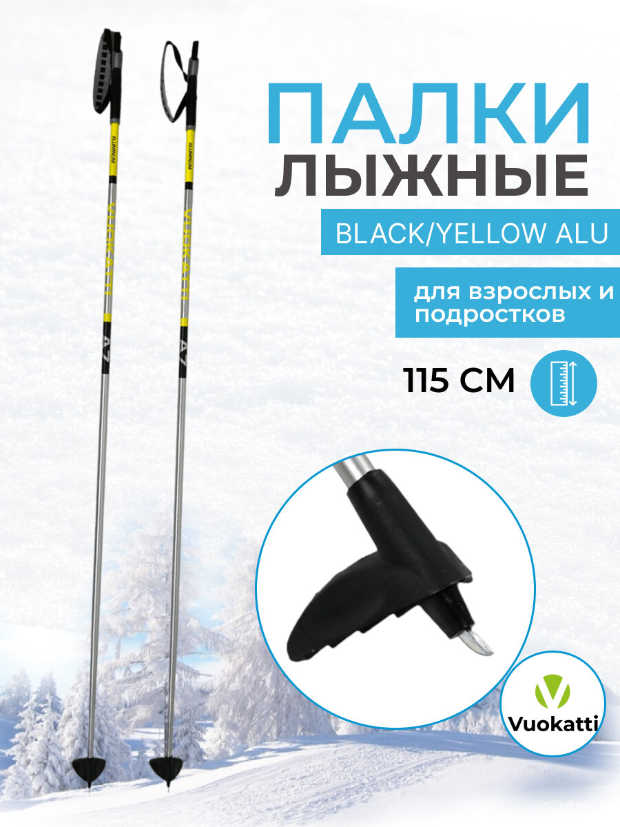 Палки лыжные беговые VUOKATTI 115 см Black Yellow ALU информация:
