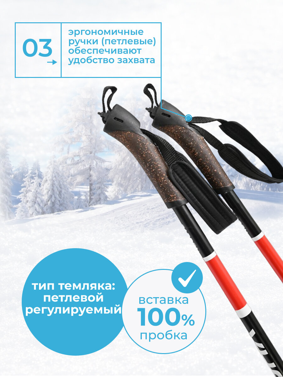 Палки лыжные беговые VUOKATTI 155 см Black Red гибрид информация: