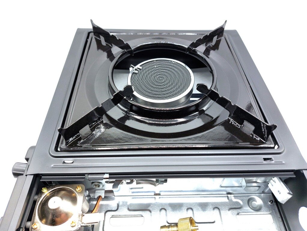 | Особенности конструкции | 1 конфорка, пьезоподжиг, регулятор уровня пламени, цанговое подключение баллона, шланговое подключение баллона |