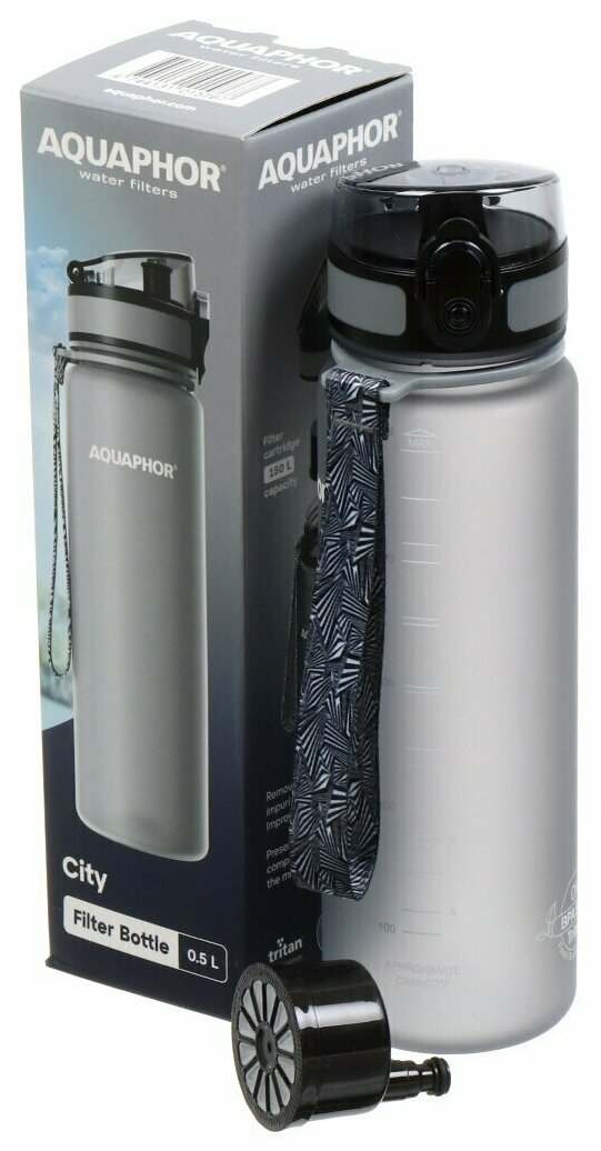 Бутылка с фильтром для воды Аквафор Сити, 0.5, серая информация: