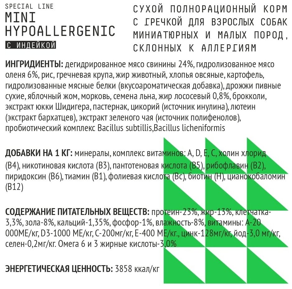 Сухой корм AJO DOG SPECIAL LINE MINI HYPOALLERGENIC для взрослых собак маленьких пород при пищевой аллергии с индейкой и гречкой (2 кг)