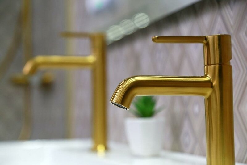 Смеситель для раковины Frap F1086-3, латунный, покрытие золотой сатин