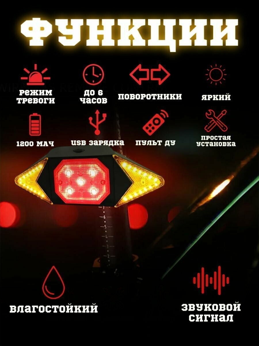 Велосипедный задний фонарик с пультом ду и мигалкой информация: