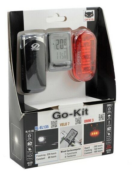 Фонарь + Вело-компьютер Cat eye Go-Kit EL135/Omni 3/Velo 7 комплект информация: