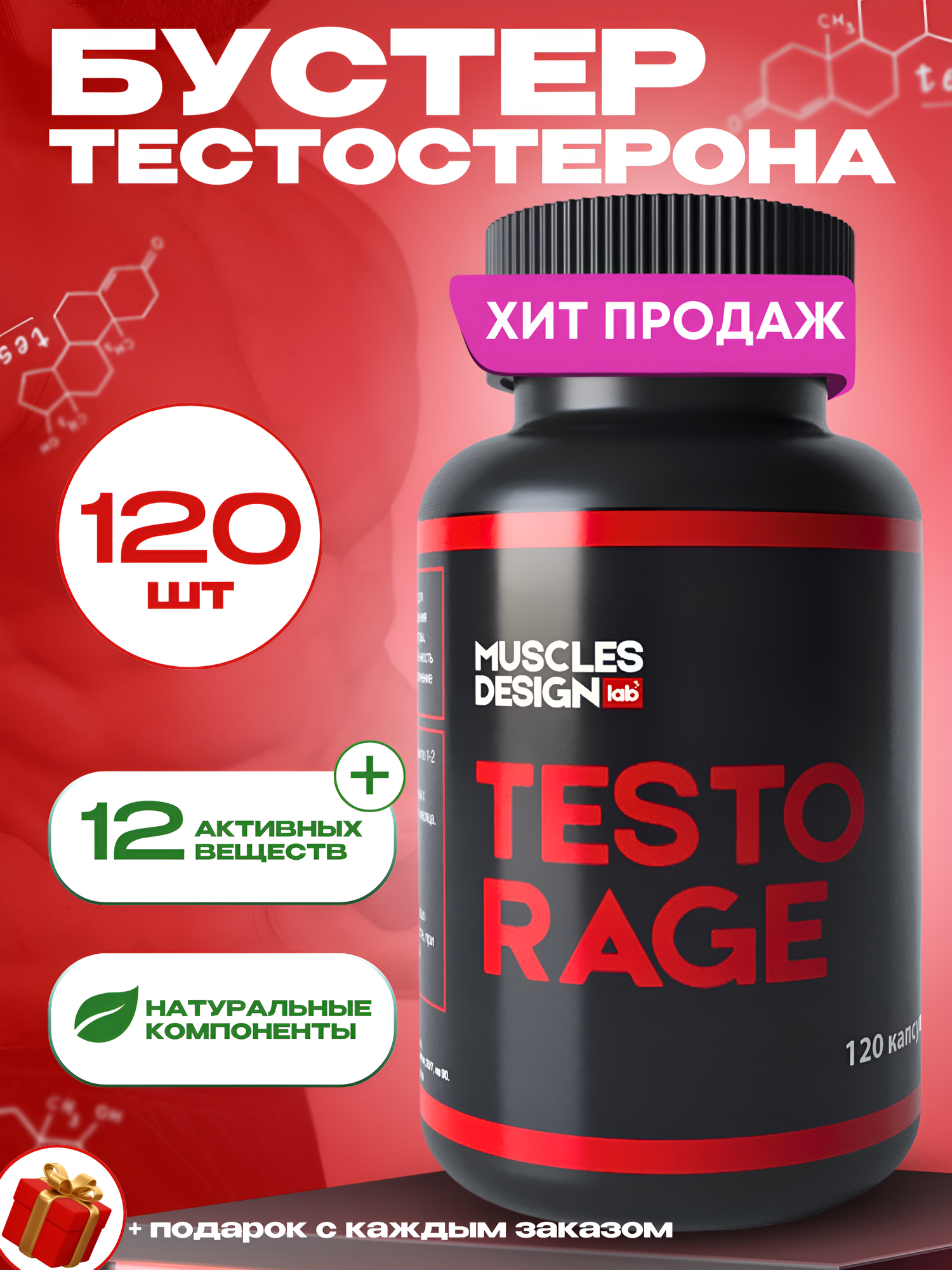 Повышение тестостерона, либидо, потенции, натуральная виагра, ZMA, бустер для мужчин TESTO RAGE информация: