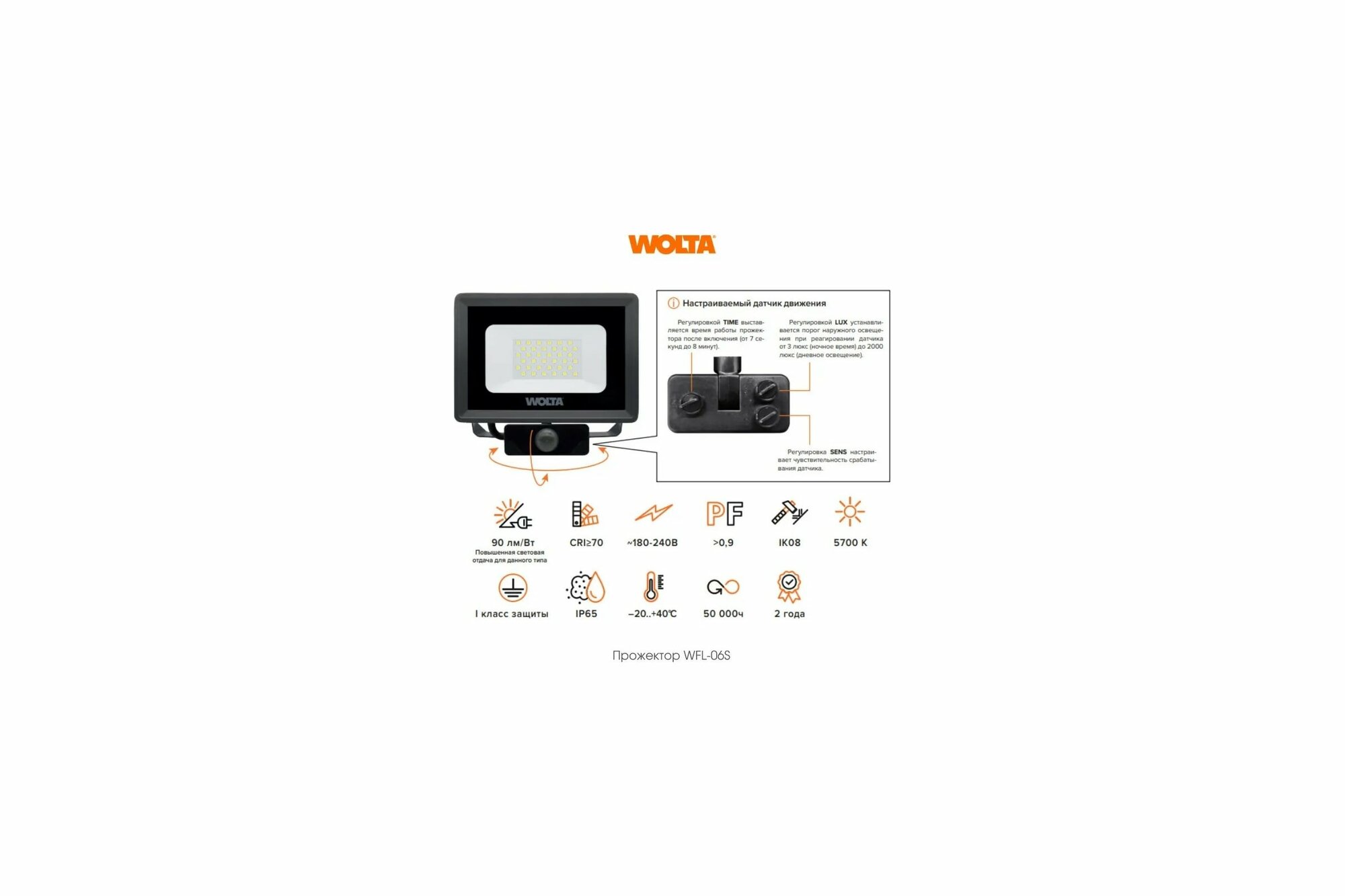 Прожектор Wolta WFL-10W/06S 900 Лм с датчиком движения информация: