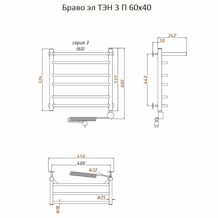 Полотенцесушитель электрический Тругор эл ТЭН 3 П 60х40 информация: