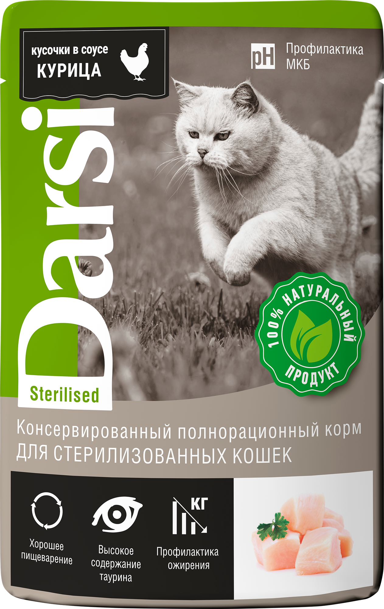 Darsi пауч для стерилизованных кошек курица в соусе 85гр информация: