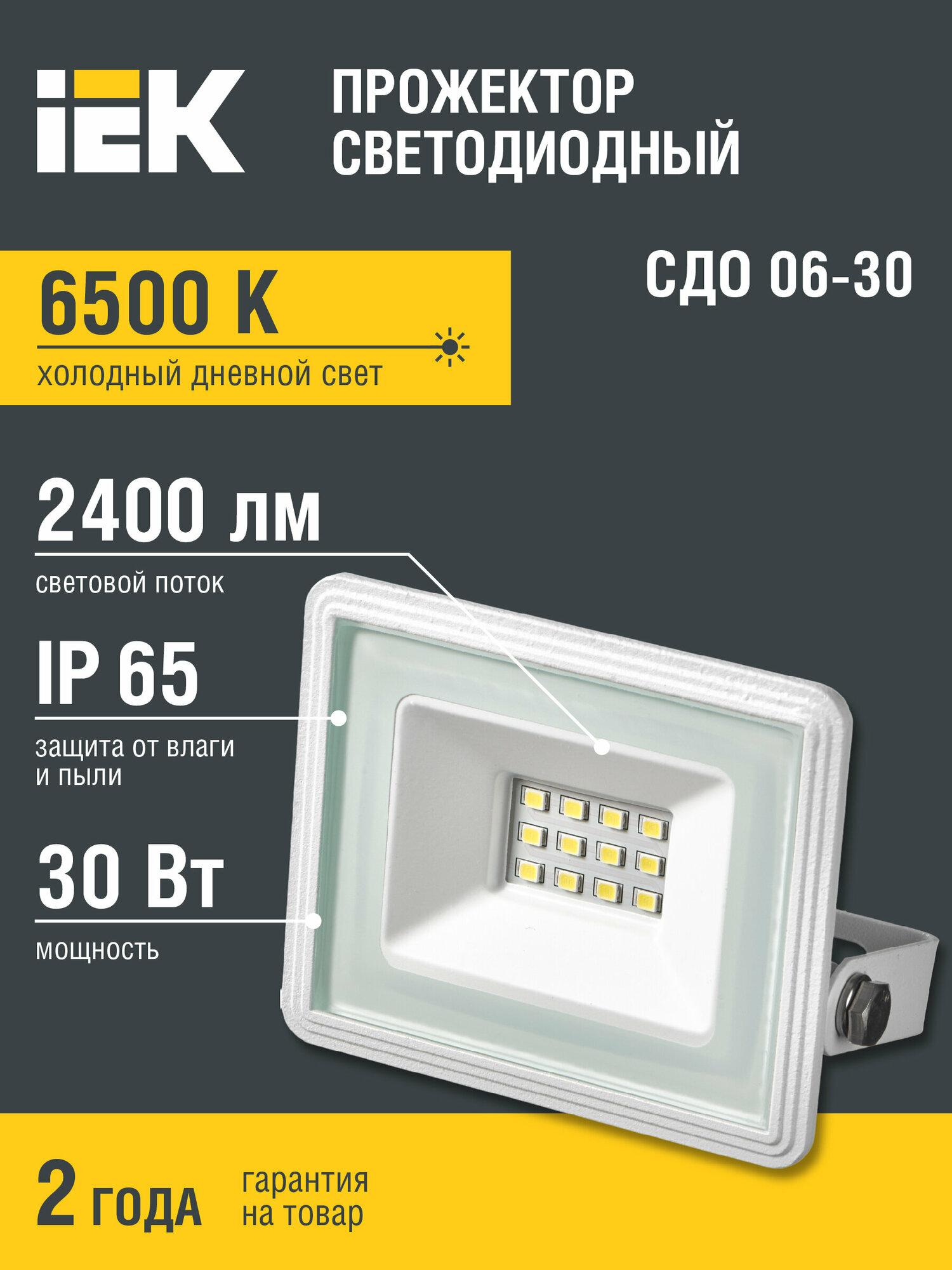 Прожектор светодиодный IEK СДО 06-30 (6500К) White, 30 Вт, свет: холодный белый информация: