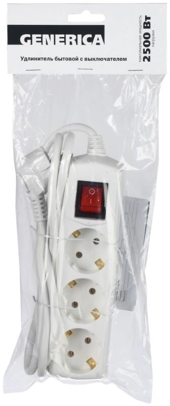 Удлинитель 3х1.5м с заземл. 10А 250В У03 GENERICA 2P+PE 3х1кв.мм IEK WYP10-10-03-D15-Z-G (8шт.в упак.)