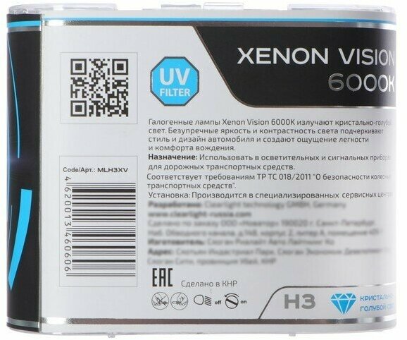 ClearLight Лампа H3 Clearlight 12V-55W XenonVision 2 шт. информация: