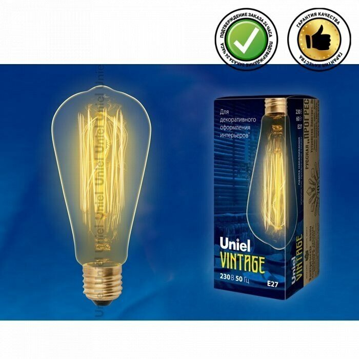 Отзывы на Лампа накаливания Uniel E27 60W золотистая IL-V-ST64-60/GOLDEN/E27 VW02 UL-00000482